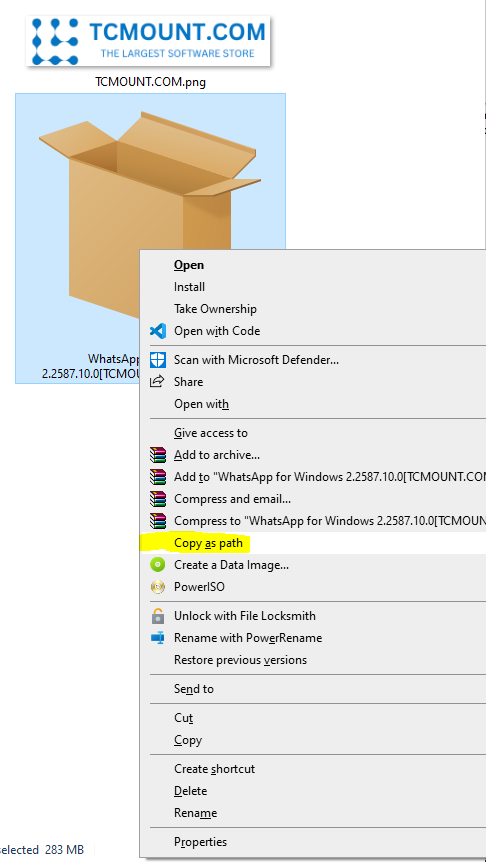 For eXample: “C:\Users\TCMOUNT\Desktop\WhatsApp for Windows 2.2587.10.0[TCMOUNT.COM].Msixbundle”